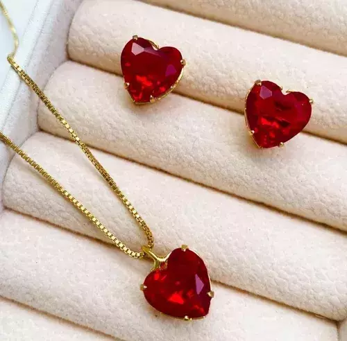 Conjunto Semi Jóia colar e brinco CORAÇÃO, daqueles que você não vai mais querer tirar.